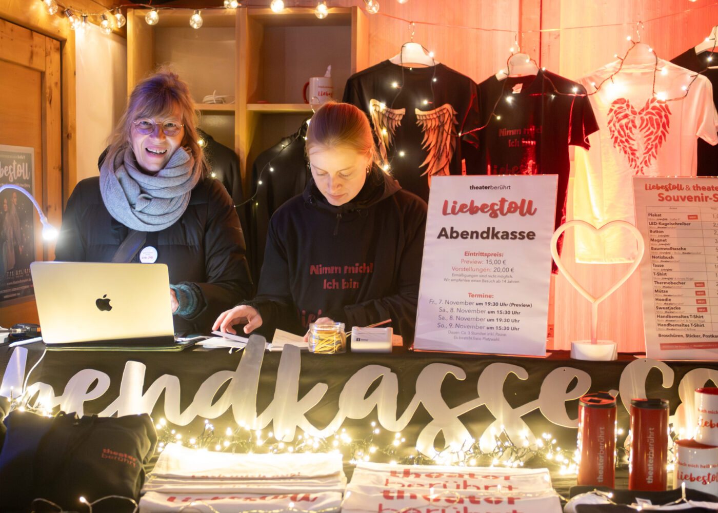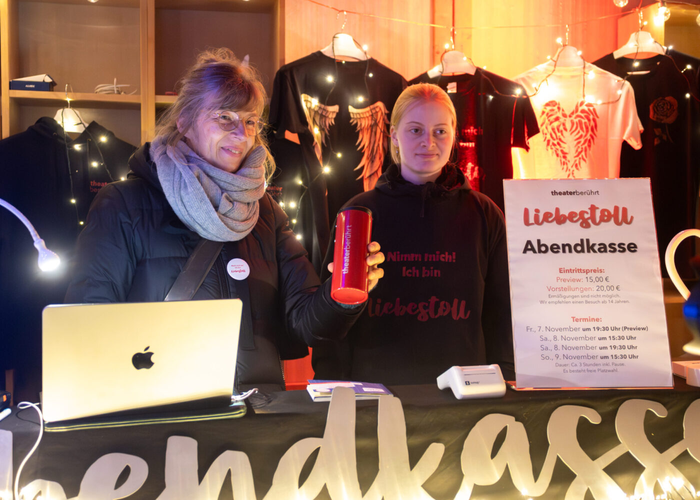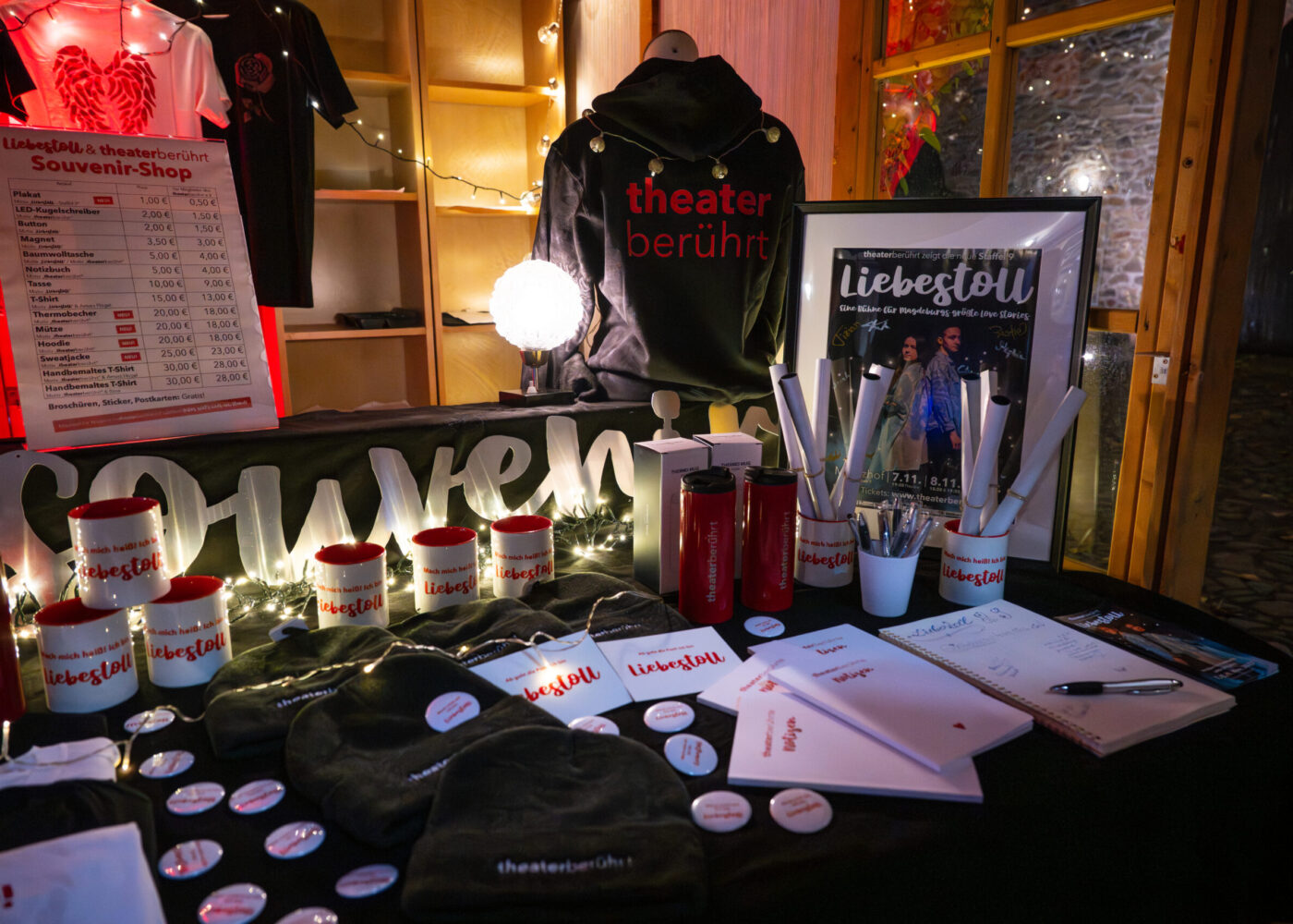 Sie suchen ein Andenken mit unserem „Liebestoll“-Logo oder dem „theaterberührt“-Schriftzug?